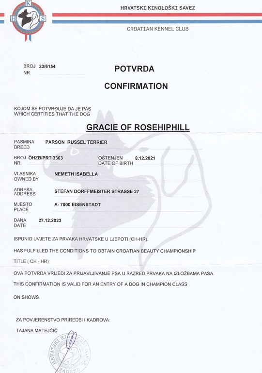 09. Feber 2024 Gracie in Rekordzeit nun auch Champion von Kroatien!